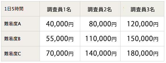 ・浮気料金表